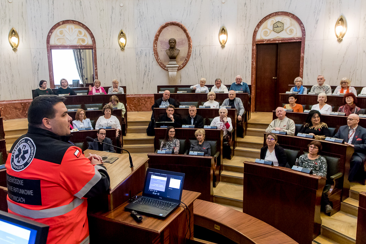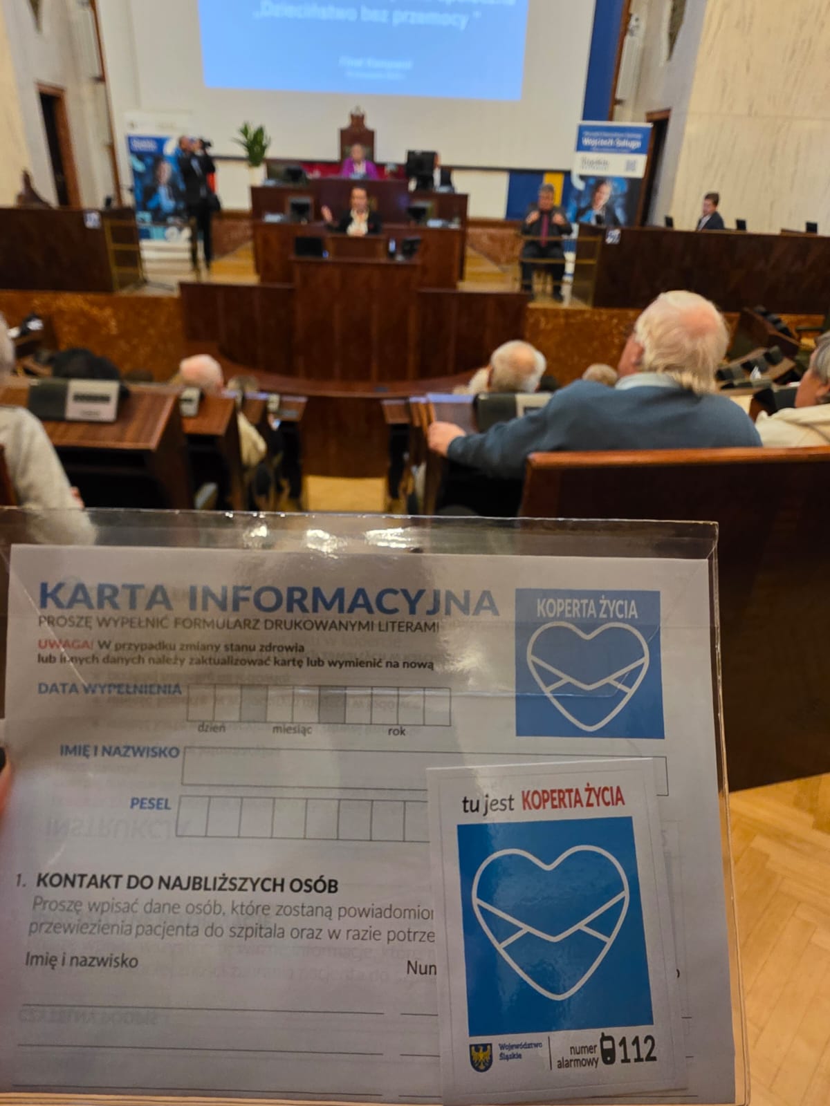 Jednym z prelegentów był Pan Łukasz Pach – Dyrektor Wojewódzkiego Pogotowia Ratunkowego w Katowicach, który mówił, jak ważne jest aby osoby chorujące na cukrzycę podawały informację o chorobie w tzw. kopercie życia. „Koperta życia” to inicjatywa polegająca na umieszczeniu w łatwo dostępnym miejscu (najczęściej na lodówce) informacji o stanie zdrowia osoby, jej chorobach przewlekłych, przyjmowanych lekach, alergiach, a także kontaktach do bliskich. Ratownicy medyczni, którzy przyjeżdżają do nagłego zdarzenia, mogą dzięki temu szybko uzyskać kluczowe dane i podjąć właściwe działania.