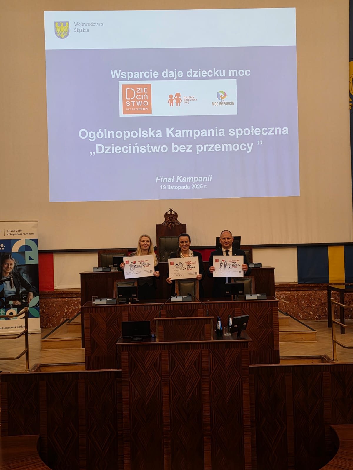W związku z tym, że 19 listopada był finał Ogólnopolskiej Kampanii Dzień Dzieciństwo bez Przemocy, uczestnikom konferencji wręczono czerwone wstążki, na znak sprzeciwu wobec krzywdzenia dzieci.